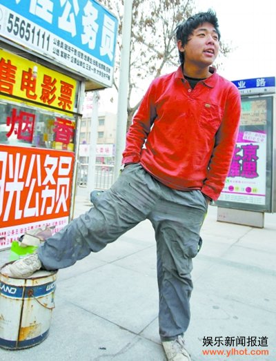这个男青年上身穿一红色薄外套,下着又脏又烂的宽松运动裤,上面有一些烟头烧痕和饭渍。胖乎乎的圆脸,一双大眼睛,看上去让人与“沿街乞讨”的残疾人根本联想不到一起。