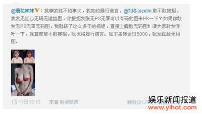 烟花妹妹微博叫嚣度娘刘冬 粉丝暴涨发裸照(2)